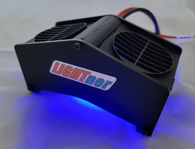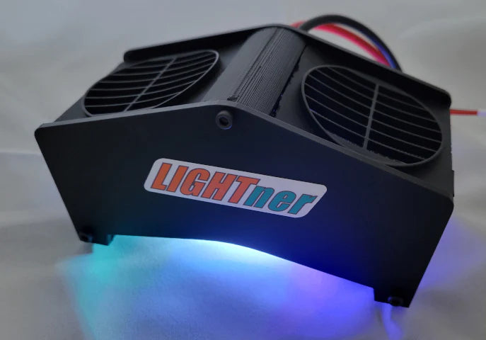 The cooling fans in the LIGHTner High Power Discharger are thermostatically controlled which means that the fans turn on when the discharger gets hot and stay running until the discharger has cooled back down. Once the fans have turned off after completion of the discharge cycle, the LIGHTner High Power Discharger is cool enough to pick up and stick in your pit bag.